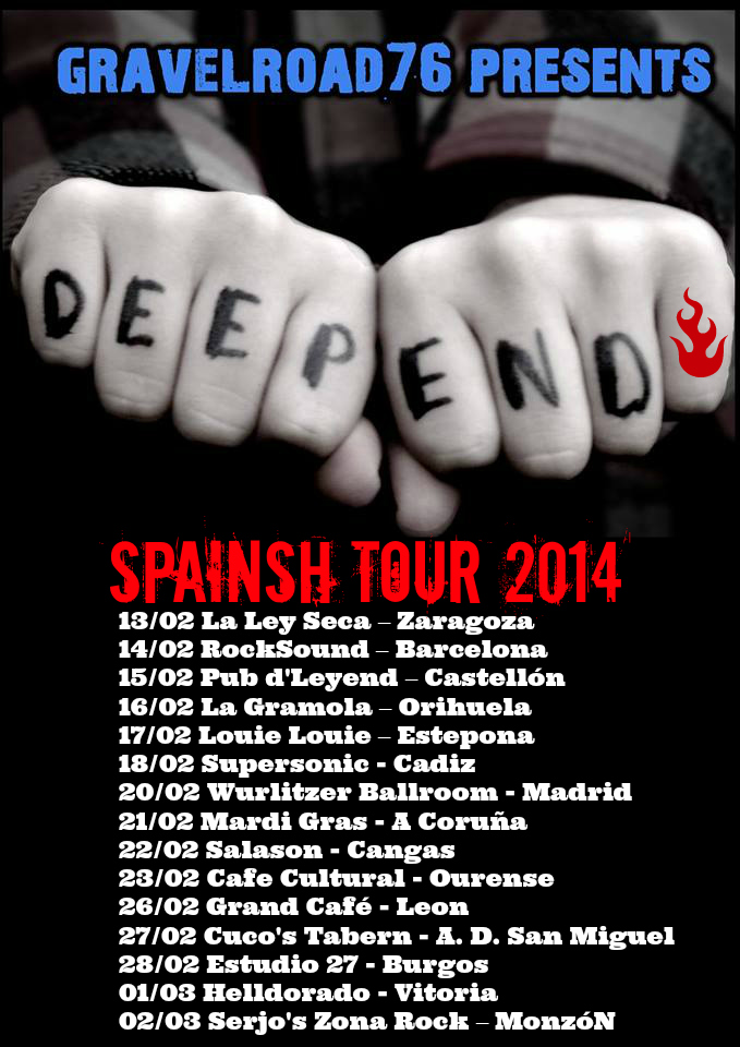 Las fechas y lugares confirmados de The Deep End spanish tour 2014 son: