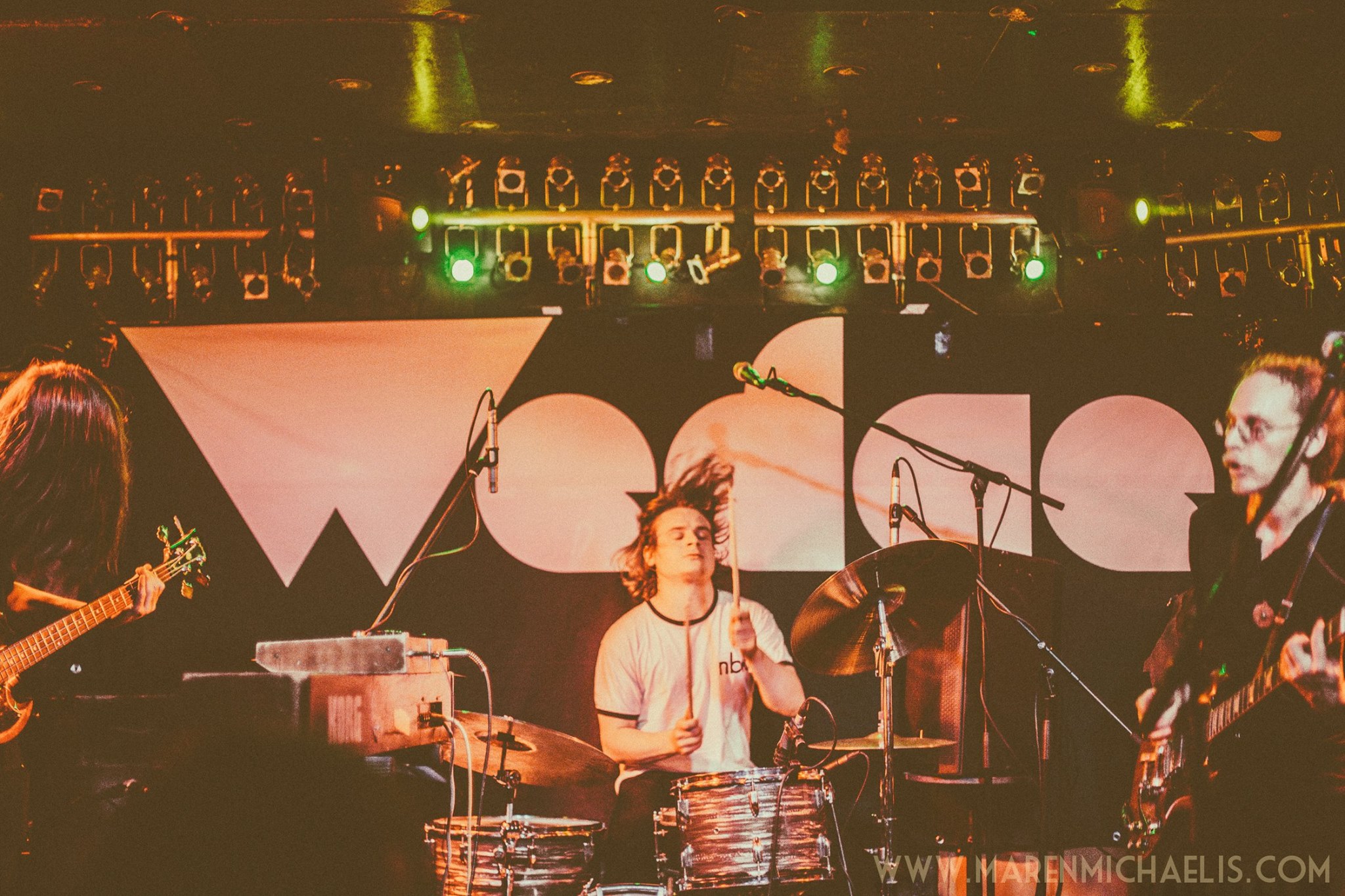 «The Holg y yo tocamos en España varias veces con mi antigua banda, así que sabemos que el público español es muy divertido! Pero sí, es la primera vez con Wedge y esperamos un montón de diversión, por supuesto, a lo largo de la carretera y buena gente en cada noche loca! Un espectáculo típico Wedge comienza con rock’n’roll puro y termina con… bueno, rock’n’roll puro. Entre todo tienes algunas dosis de psicodelia y mucha energía, mucha guitarra fuzz, algunas baquetas rotas y órganos de aquí para allá. Por la segunda canción normalmente estarán goteando sudor. Después del espectáculo parece que tenemos 10 años más cada uno y por lo general terminamos perdidos con quien todavía está alrededor. (risas)