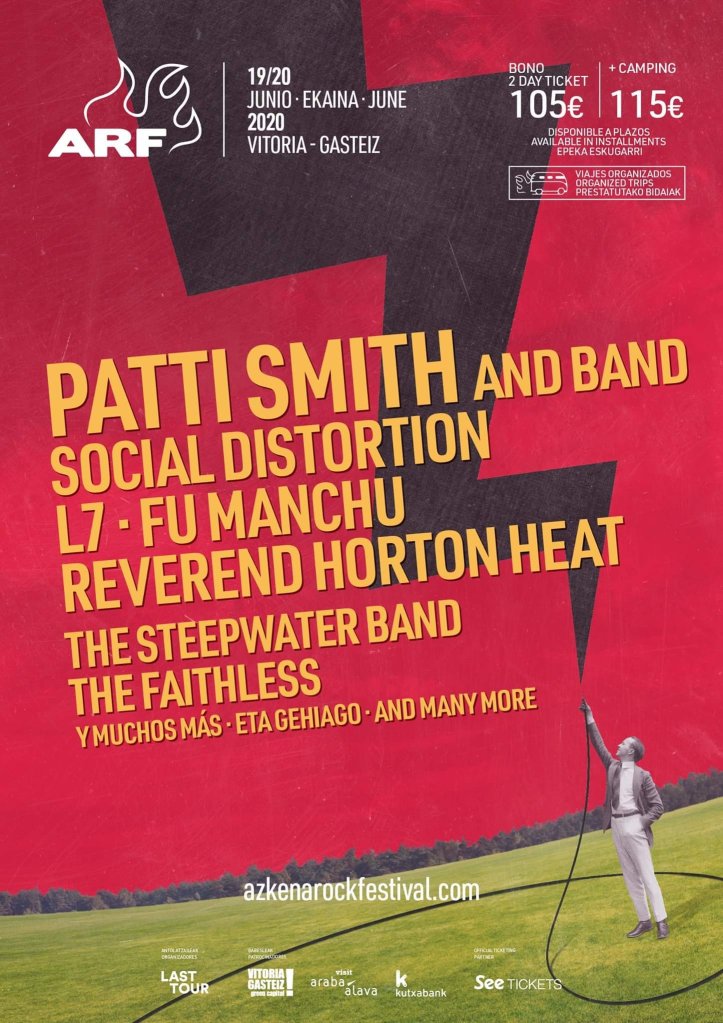 El Azkena Rock festival anunció las nuevas bandas que acompañarán a Social Distortion y Fu Manchu. En la explanada de Mendizabala este año tendremos el lujo de tener a una veterana diva del rock como es Patti Smith, y también el retorno de bandas que ya nos han visitado y que es un placer poder volver a degustar en directo como L7, Reverend Horton Heat y nuestros buenos amigos The Steepwater Band (Chicago).