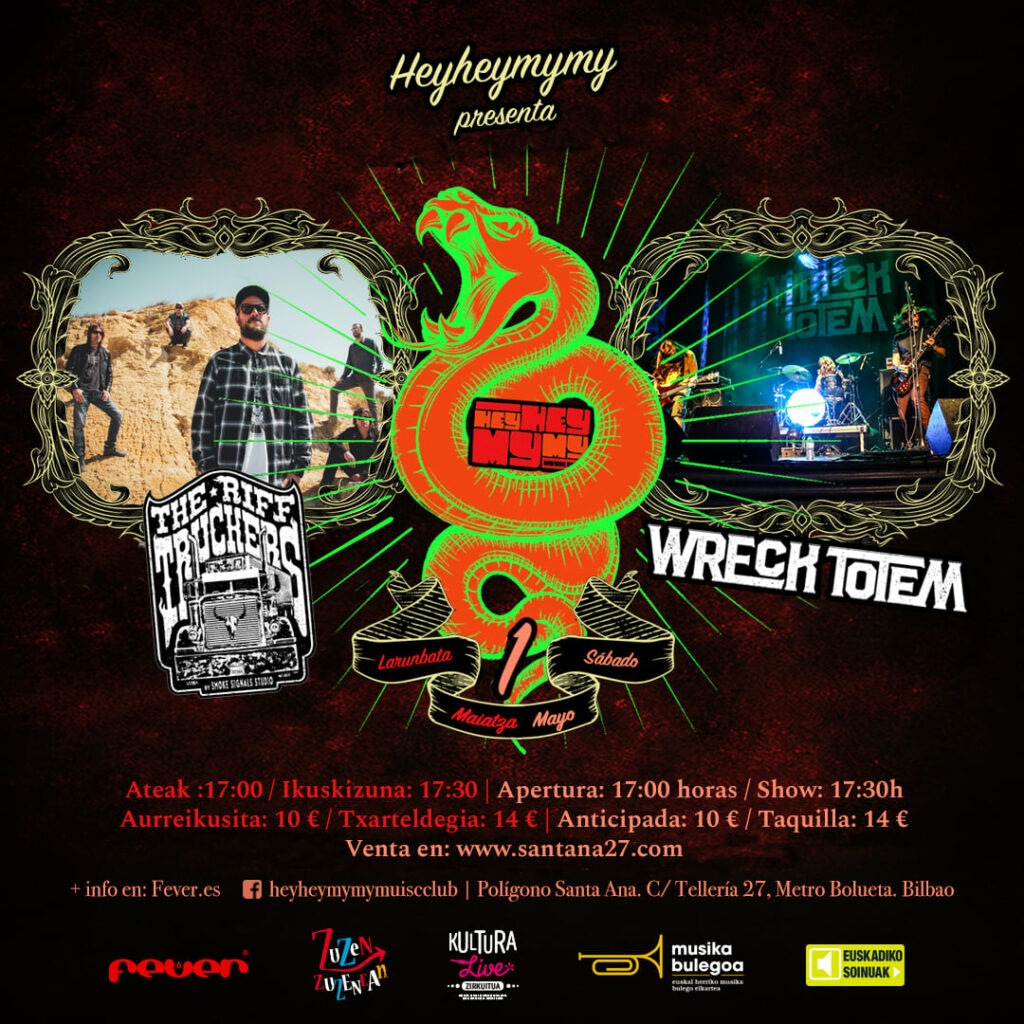 Los gernikarras The Riff Truckers vienen dando leña desde hace quince años, y pertenecen al selecto grupo de ganadores del concurso Pop Rock Villa de Bilbao, certamen internacional con una solera que… Mejor que sigamos a lo nuestro. Mejor que no metamos el dedo en la llaga. Obtuvieron el galardón en la edición de 2010, y para ese entonces ya llevaban unos años subiendo a escenarios y en el bolsillo, «On Route», su estupendo estreno editado el año anterior. Más tarde llegarían “Healing The Soul” o “Over The Edge”, con los que han ido aumentando su fama de banda explosiva y absolutamente fiable en directo, actuado en un sinfín de garitos y festejos de Euskal Herria y otros muchos desperdigados por la geografía. Podríamos considerar al quinteto como una rara avis (con todo el riesgo que ello implica) en el panorama actual, pues su propuesta inicial ha ganado calibre gracias a la rica fusión de ritmos, elementos y sonidos manteniendo el pulso entre la vanguardia y la tradición. Su gran seña de identidad. En su ponencia hay cabida para todo. Custodian el abolengo de los doce compases y sin rubor se apoyan en el recitado hiphopero, campo a través conducen un pick up texano y meten la quinta cuando circulan por largas autovías del rock and roll, emplean un rico arsenal de fundamentos y elementos y en sus espectáculos es fácil ver a la peña taconeando con sus botas de cowboy, brincando y brindando o sosteniendo airados combates cuerpo a cuerpo en periódicos pogos. Precisamente lo que no ocurrirá en Santana 27 por todo aquello que ya conocemos, no obstante la asistencia vibrará y gozará con el potente rock de Wreck Totem y The Riff Truckers. Habrá que ir, ¿no?
