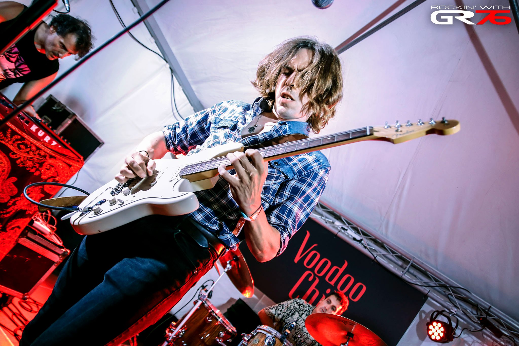 Nada más concluir su actuación, nos dirigimos al rincón bautizado Voodoo Child en el que formaciones locales tenían su plaza mientras el escenario principal era modificado, siendo Micky & The Buzz quienes estrenarían la carpa ante un número considerable de gente. Habíamos dejado un espacio cerrado y estábamos a la intemperie. Buen rollo. Bailables canciones fundamentadas en el viejo rock and roll de los cincuenta, coletazos de swing, actitud canalla y una muy buena sincronía entre espectadores y oficiantes porque, aparte de la animada condición musical, sus integrantes insistían con sus ademanes para que el respetable conectara. La guitarra echaba humo, el saxo acribillaba, su cantante encendía la mecha y el tándem rítmico hacía lo propio con canciones originales (“Strong Woman”, “Coffee To Go”, “Una fetta di limone”) con otras prestadas (“I Got Loaded”) y armando un buen pitote.