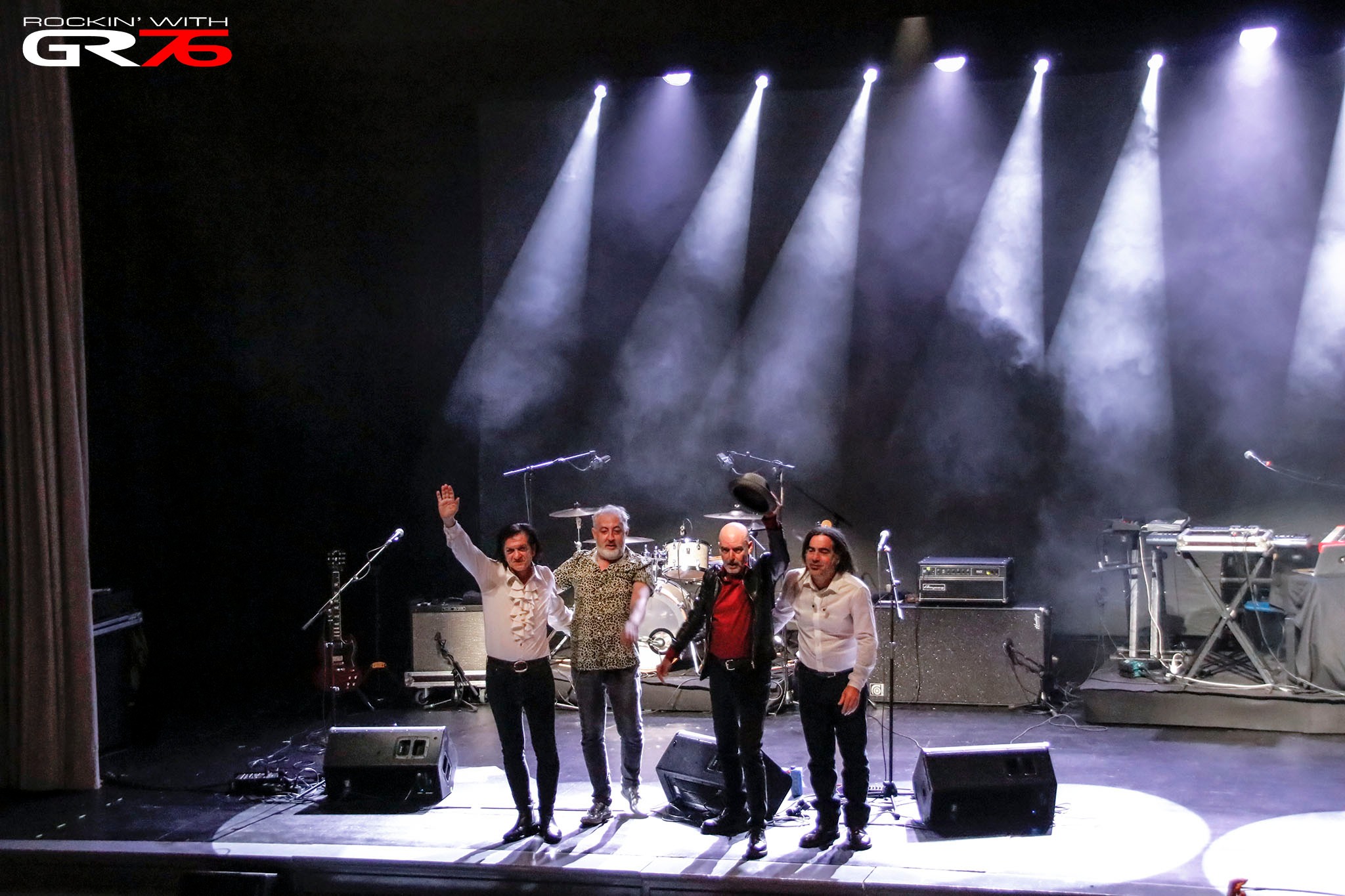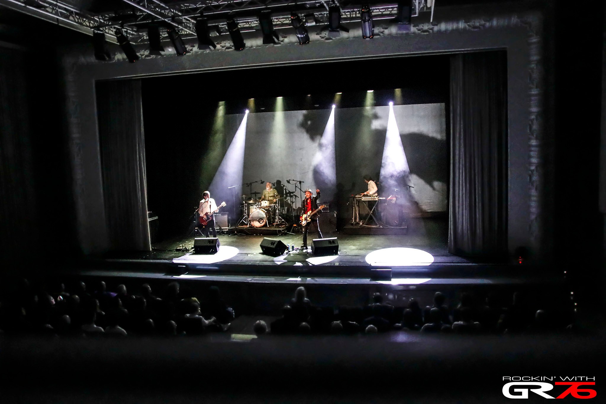Debíamos cumplir. Pese a que las calles estuvieran atiborradas de gente realizando las habituales compras navideñas, pese a que la gente se reuniera en tascas y tabernas antes de los también habituales banquetes de colegas o empresas, o simplemente aprovechara el día (el clima lo permitía) de pintxopote con la cuadrilla o familia, teníamos reservada terapia grupal con el doctor Rock n’ Roll. Así que canjeamos la animada marabunta callejera por una sala convertida en remanso de paz. Solo los primeros minutos, ya que paulatinamente se fueron ocupando las localidades hasta rozar su aforo y una vez llegado el horario establecido para el comienzo… Antonio Arias, Juan Codorniú, JJ Machuca y Eric Jiménez (cantante y bajista, guitarrista, teclista y baterista respectivamente) puntualmente se personaron y a partir de ese instante arreciaron los watios, arreciaron los aplausos. La profundidad lírica enmudeció al personal y la carismática personalidad musical de la banda hizo el resto. Bailes o tumultos no hubo ya que estábamos perfectamente atrincherados en las butacas numeradas, pero la asistencia disfrutó durante los más de noventa minutos de actuación en la que se mimetizaron con proyecciones del cineasta turolense exiliado tras la Guerra Civil o de su homólogo José Val del Omar, paisano del cuarteto a quien dedicaran un álbum en 1998.