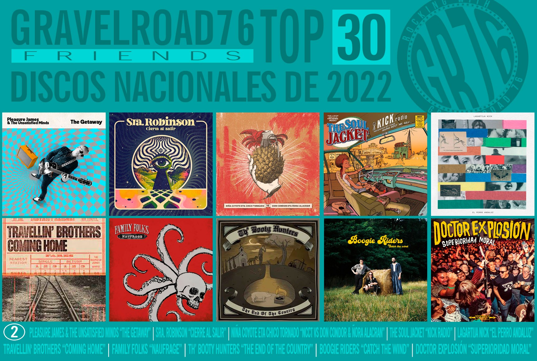 Hasta el día de hoy compartíamos las habituales selecciones de favoritos del año comenzando por las propias, o sea, las realizadas por el equipo de GravelRoad76, pero este año será diferente. Cambiamos de estrategia, y aunque esos inventarios estén rematados, debemos agradecer de antemano a todas las personas que han invertido minutos de su tiempo realizando anuarios personales con los que inauguramos el repaso a la cosecha, en este caso, nacional. Un número importante de los nombres obtenidos ha sido facilitado por las sugerencias recibidas, y podríamos decir que el listado final es un bonito ejemplo de la pluralidad de géneros, ramales o direcciones del rock n’ roll, que es, en definitiva, la grandeza de este asunto.
