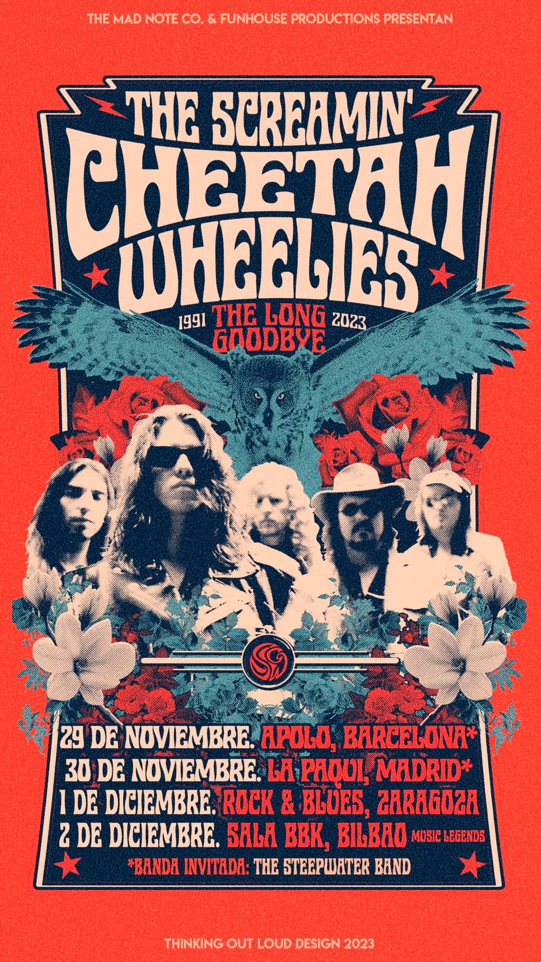 No podrá ser, pero en su lugar… En su lugar tienen programadas cuatro fechas que se presentan absolutamente apasionantes por todo cuanto supone para la afición la vuelta a los escenarios, casi dos décadas después, de los legendarios Screamin’ Cheetah Wheelies, quienes, con tan solo tres grabaciones oficiales de estudio (“The Screamin’ Cheetah Wheelies”, “Magnolia” y “Big Wheel” de 1993, 1996 y 1998 respectivamente) un par de directos y bastantes bootlegs, consiguieron entusiasmar a multitud de gente. Barcelona, Madrid, Zaragoza y Bilbao son las ciudades agraciadas en esta tourné bautizada como “The Long Goodbye 1991-2023”, y probablemente habrá quien repita dos, tres, o incluso intente la hazaña de presenciar los cuatro conciertos. Las dos primeras citas se auguran sensacionales porque cuentan con la compañía de otra fantástica banda como The Steepwater Band, mientras el show zaragozano se anuncia como fiesta del vigésimo aniversario de un local que ya tiene todo el papel vendido y en el botxo, cuya velada organiza el ciclo Music Legends, se puede convertir en una despedida emotiva y emocionante. Para ir abriendo boca, han compartido recientemente “Let The Child Ride”, la primera canción que componen desde su última publicación, lo cual nos lleva irremediablemente a hacernos la pregunta que hemos insistido en formular, pero en este caso, añadimos una nueva variante. ¿Habrá nuevo disco de los Screamin’ Cheetah Wheelies? Pues de momento, hay reunión y en noviembre-diciembre hay jaleo del bueno. ¡Que no te lo cuenten!