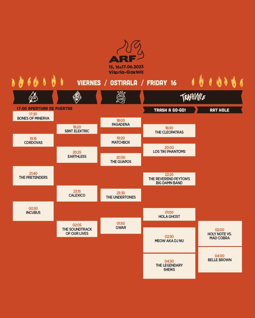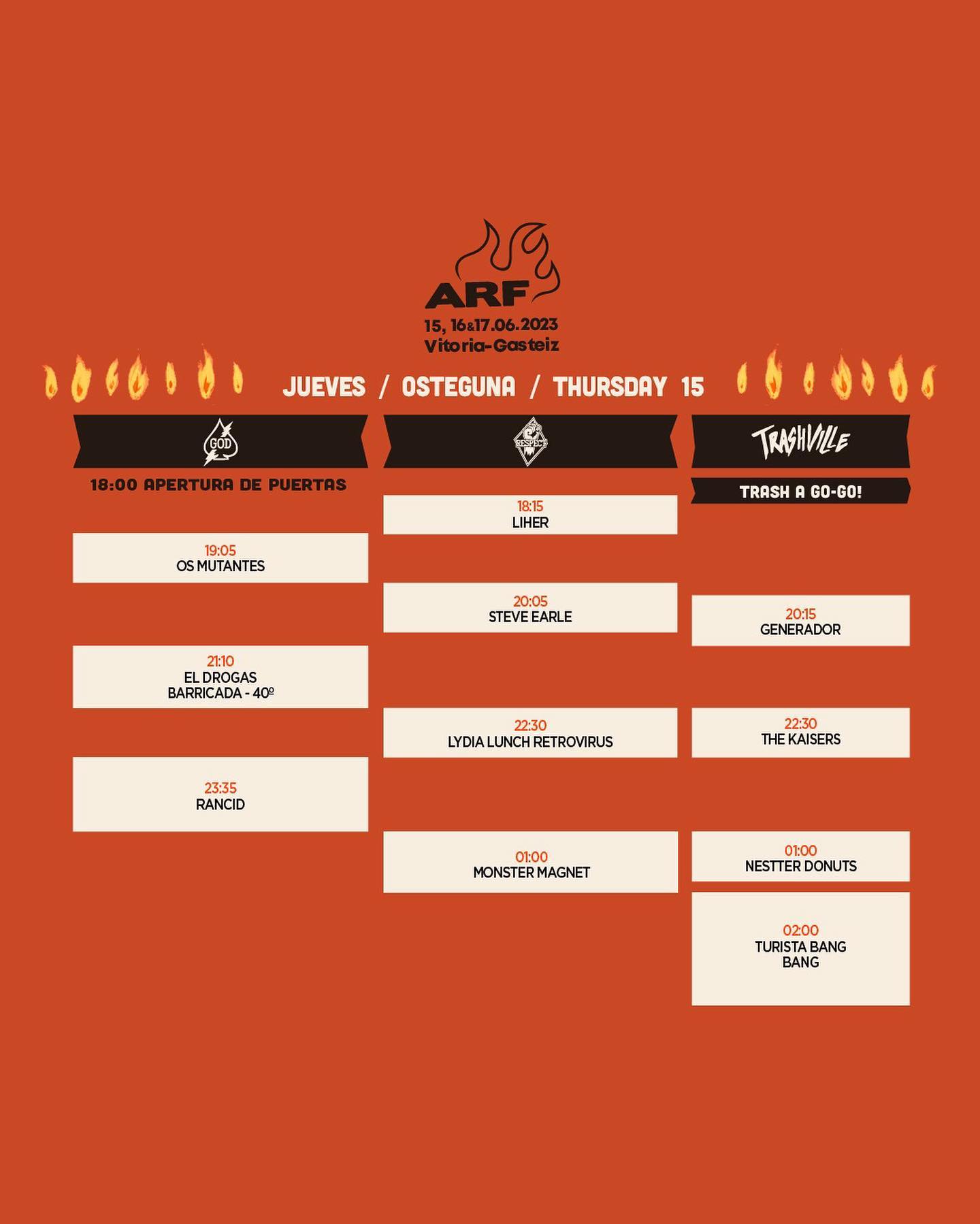Por supuesto, el gran reclamo es la gente que va a subir a los escenarios, al God, Respect o Love Stage, quienes van a sudar en la sauna canalla Trashville o quienes van a oficiar sesiones matinales abiertas a todos los públicos en la Plaza de la Virgen Blanca. Habrá que tomar (como siempre) difíciles decisiones porque es físicamente imposible abarcar todo si bien tenemos la convicción de cumplir frente al mayor número de shows que, dicho sea de paso, coinciden en horarios en algunos casos. Una de las mayores peloteras entre la afición. Este año la palma se la llevan Lucero y Melvins y tal vez haya algún atropello más, pero debe(ría)mos entender que en un certamen de este calibre los ajustes no se ajustan a un solo criterio. Además, son muchas horas de tralla y hay que darle tregua a un cuerpo que necesita pausa, alimentación e hidratación. Ah, sí. Se nos olvidaba. ¿Nombres? Pues tres ya hemos dicho, y podríamos añadir cinco incluso veinte, pero probablemente nos dejaríamos alguno en el tintero, así que te mostramos los horarios establecidos y recomendamos visites cualquiera de las páginas oficiales de Last Tour o Azkena Rock Festival y de paso, cruces el umbral de la puerta de acceso al paraíso. ¿Te lo vas a perder?