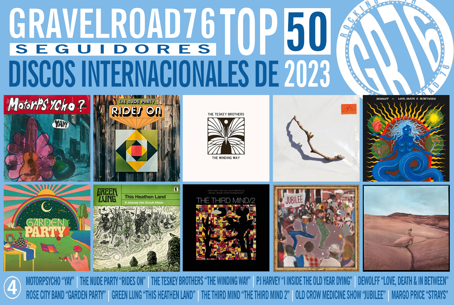 Tras vuestras opiniones en el apartado nacional, damos por concluido el repaso al año 2023 con el resultado final de vuestras sugerencias en lo que se refiere a los discos publicados allende las fronteras. Con el escrutinio de vuestros mensajes o correos enviados a las direcciones de GravelRoad76, que por cierto, ha estado peleada la cosa. Podríamos asegurar que las posiciones son prácticamente anecdóticas, puesto que hemos podido comprobar que hay bastante paridad en la añada. Exiguas diferencias y mucha calidad también, porque este universal movimiento sigue teniendo grandes, muy grandes representantes en todos los palos y a todos los niveles. Desde el más austero blues hasta la idea más vanguardista. Desde ilustres veteranos hasta potenciales promesas. En grandes metrópolis, EN espaciosos poblados, en frías comarcas o en zonas desérticas. Y como ocurriera con el listado nacional, después del ranking obtenido incluimos una playlist con una canción representativa de los discos seleccionados más la relación (ordenada alfabéticamente) de bandas y artistas recopilados, aparte de otros pocos añadidos de nuestra cosecha. Agradecemos de nuevo a todas las personas que han perdido unos minutos de su tiempo y se han puesto en contacto, así como al resto de seguidores de GravelRoad76 por estar ahí, al otro lado de las pantallas. De paso os deseamos un feliz año nuevo.