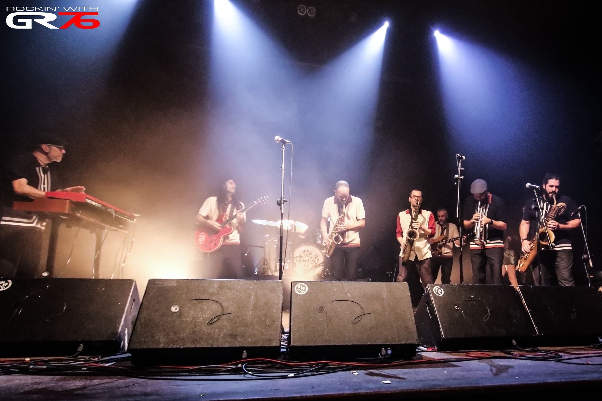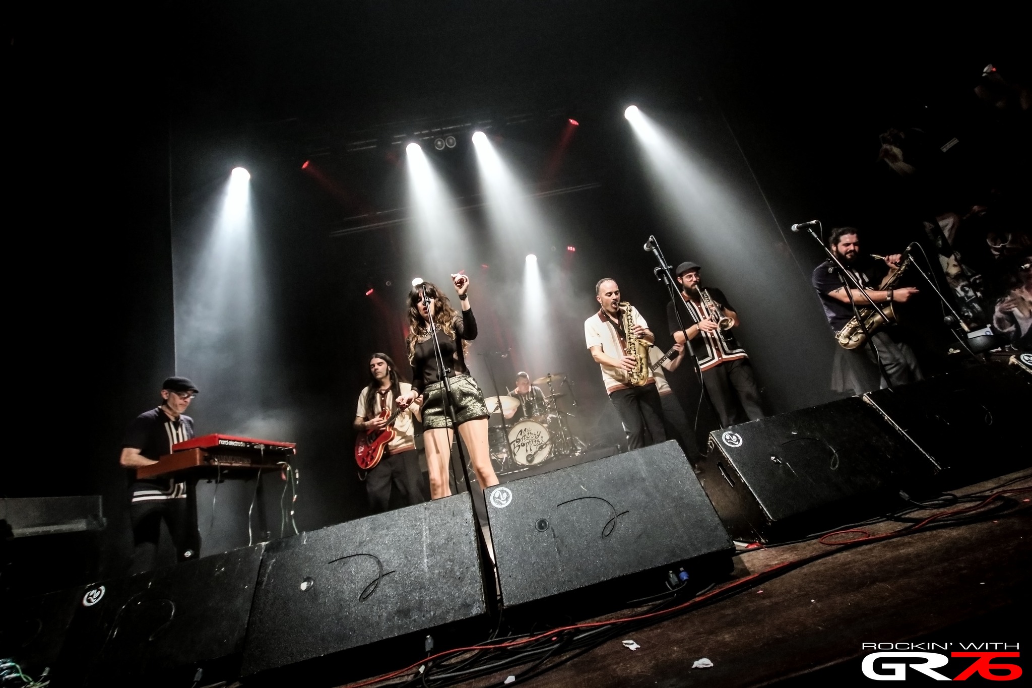 Y como plato principal, un nutritivo y especiado guiso cocinado a fuego lento por los Cherry Boppers, unos tipos que, tras el obligado cambio de backline liquidado entre técnicos y músicos en tiempo récord, comenzaron el show a base de sus ya conocidas y sudorosas melodías que ponen en órbita a cualquiera como “Blasphem Blaster” o “Simon Is Back”. En esos minutos iniciales Mihail Goldfingers, saxofonista y flautista de la hermandad era el encargado de alentar al gentío, pero ese planteamiento experimentaría un giro de 180° con la entrada en escena de la también bilbaína Patricia Reckless en “Monkey Monkey”, una de las canciones del trabajo que grabaron juntos el año pasado. Por cierto, vigésimo aniversario de la banda, lo cual es digno de subrayar. Si a la dificultad de llevar veinte años en la farándula añadimos el hecho de defender un repertorio instrumental, el tinglao tiene que ser de considerables dimensiones. Sin embargo, y pese a múltiples cambalaches debido a compromisos artísticos o diferentes motivos, los tíos siguen erre que erre y para conmemorar el aniversario decidieron hacer algo diferente tanteando la posibilidad de contar con la integrante de Bohemian Soul.