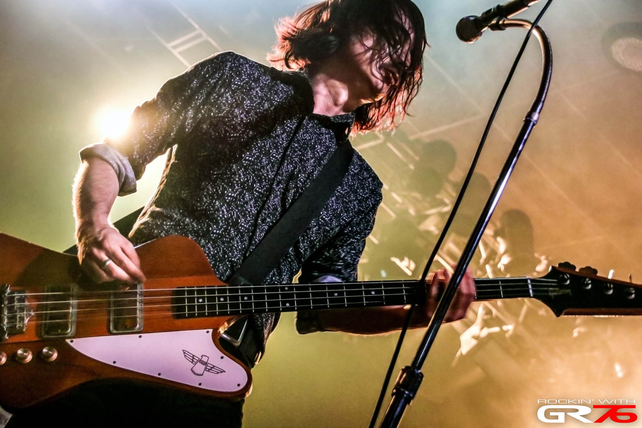 Llega el momento de cambio de backline. Llega el momento del refrigerio, de furtivas retiradas y necesarias treguas que sirven para intercambiar pareceres o para otear el horizonte en búsqueda de una posición más benévola para seguir el directo de los nórdicos, pero va a ser que no. Ni se intenta. No era el día apropiado para osadías. Además, no estábamos tan mal situados en el flanco izquierdo, lugar habitualmente utilizado como estratégico y que en la Sala Santana guarda especial importancia dada su orientación y la posibilidad de oxigenarse unos minutos si fuera menester. Desaparece el sonido ambiente, la iluminación rojiza preside de nuevo un escenario sobre el que planean helicópteros que se van acercando, se adivinan las sombras de los señores Andersson, de Borst, Lindström, Eriksson y Valeta, se intuye un one, two, three, four, el fuerte estallido “Action De Grace” revoluciona el ambiente y se sienten muestras de fervor cuando los dos guitarristas acometen los primeros movimientos sincronizados de lumbares y caderas. Una auténtica demostración de entrega y contorsionismo que encendería aún más los ánimos de una gente ávida de High Energy y dinámico Rock ‘n’ Roll que sería la tónica de un concierto en el que pudimos escuchar y corear canciones que, de alguna manera, han pasado de pantalla para convertirse en clásicos. Canciones como “The Devil Stole The Beat From The Lord” que aceleran el ritmo cardiaco, están incrustadas en la mollera o nos han acompañado en el camino. Clásicos como “Carry Me Home” que te pone de inmediato las pilas e insta a seguir con todos los sentidos aconsejando, a su vez, no practicar las mismas coreografías de Nick Royale y LG Valeta, pues tu oxidada espina dorsal podría sufrir un serio percance.