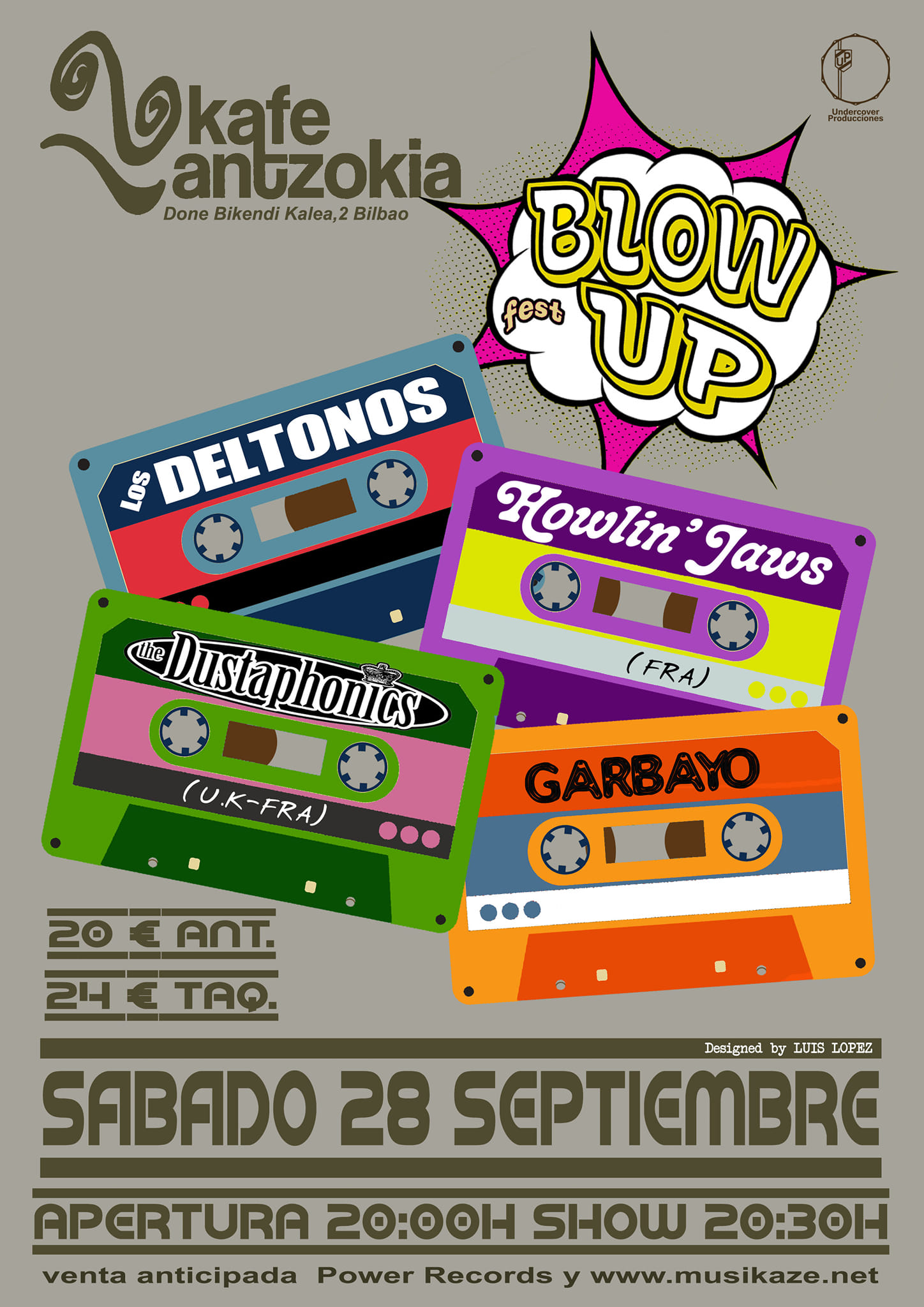 Se adivina movimiento para el primer sábado de otoño en el botxo, o al menos eso nos gustaría que sucediera en el interior del Kafe Antzokia bilbaíno el 28 de septiembre, puesto que tendrá lugar la quinta edición del Blow Up Fest. Para la convocatoria, la agencia Undercover Producciones propone un atractivo cuarteto formado por los cántabros Los Deltonos, los parisinos Howlin’ Jaws, los londinenses The Dustaphonics y la formación local Garbayo. Cuatro bandas acreditadas. Cuatro bandas con material incendiario a sus espaldas y bastantes alabanzas sobre sus no menos incendiarias actuaciones. Cuatro bandas con dispares trayectorias pero semejantes caminos, con bastantes similitudes y puntuales diferencias. Cuatro bandas con el suficiente gancho como para atiborrar el Antzoki de gente dispuesta a bailar, brincar, vibrar, disfrutar o lanzar los brazos al aire en cada una de las cuatro intervenciones. Oportunidades para ello, habrá.