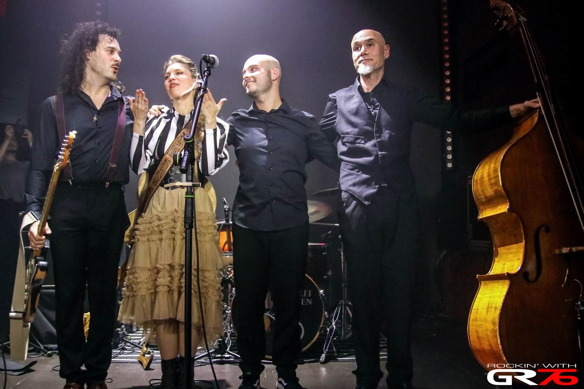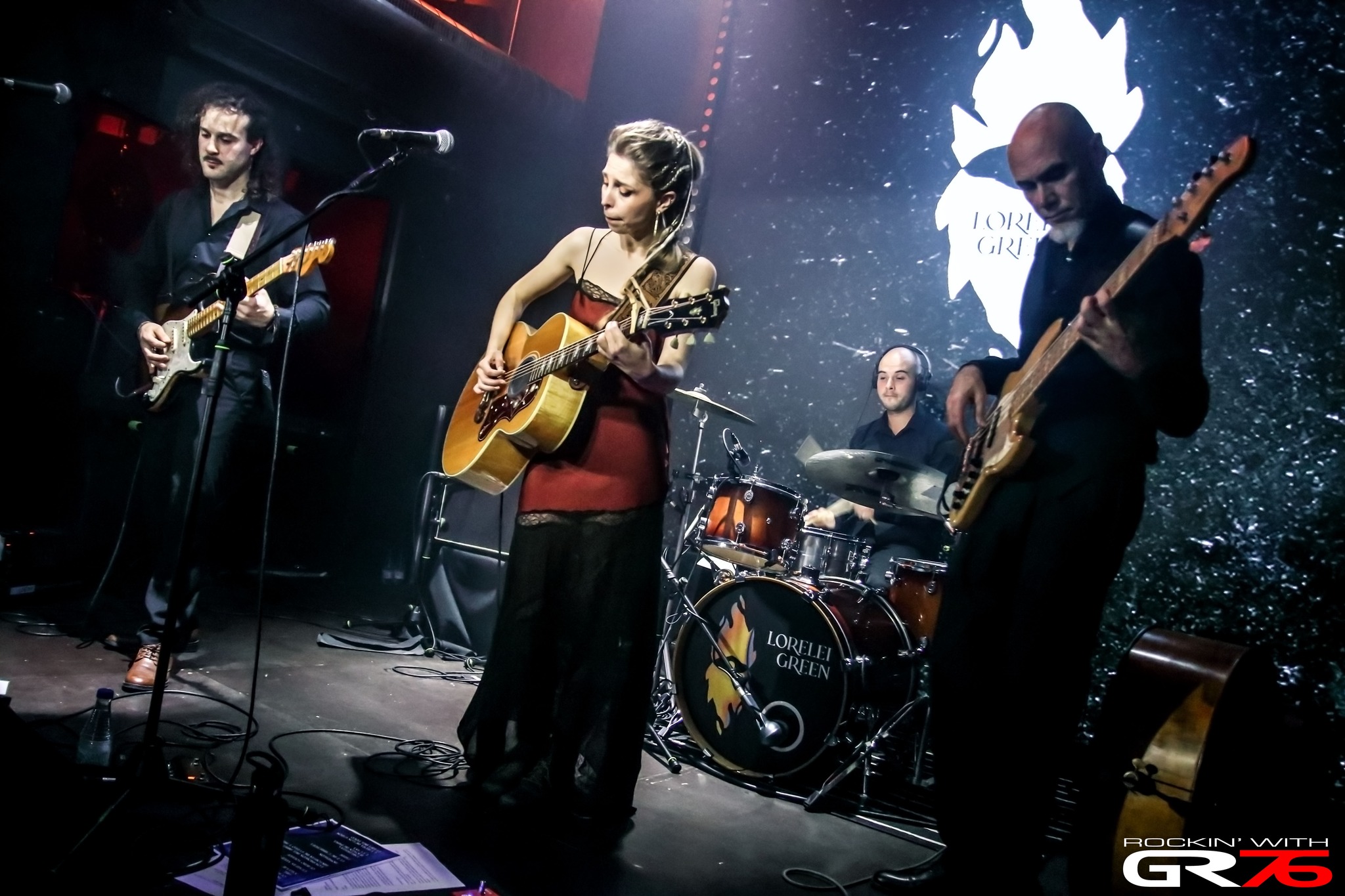 Las canciones de Lorelei, hablan, entre otros muchos asuntos, del comportamiento humano, de sueños o pesadillas y agravios como los apuntados anteriormente, demostrando el carácter de una poesía reflexiva (“Quiero Volver”, donde aparece el título de su último disco, “Lava”), una lírica urgente (“Salvaje”), expresivas contraseñas (“Cenizas Negras”), tiernas serenatas (“Aviones de Papel”) o restauradores pactos (“Domingos”) que cambian de fisonomía en las distancias cortas. Pese a que la sustancia de las canciones abrigue igual que en su versión de estudio, la energía del momento es recibida con gran pasión por parte de la absorta concurrencia mostrándose la banda, o sea, el guitarrista Alex García, el bajista y contrabajista Ricardo de Lucas más el baterista Josu Polanco, aparte de agradecida por el apoyo recibido, liberada en cierta manera porque llevaban tiempo con la fecha entre ceja y ceja. Tocaba disfrutar, expulsar la tensión y compartir con la gente presente pasionales piezas como “Luz de Carretera” en la que el pianista argentino Gasti Seguí se unió a Lorelei y Ricardo al contrabajo y… ¡¡Shhh…!! Seguramente habría bastantes mejillas humedecidas y corazones conquistados porque un inmenso escalofrío se apoderó del local logrando un instante mágico, uno de esos momentos que aún permanecerán en la memoria del personal.