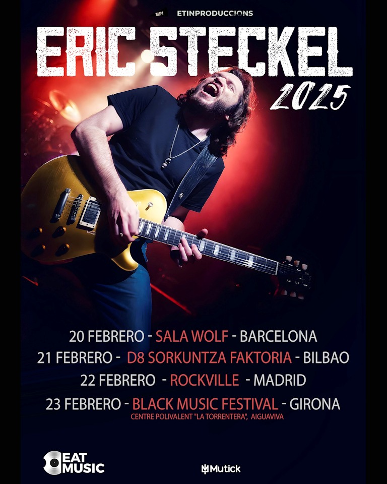 Dentro de cinco semanas el guitarrista estadounidense Eric Steckel ofrecerá, en una gira organizada por el equipo de etinproduccions, cuatro conciertos peninsulares que esperamos sean un éxito, porque el tío lo merece. Desde muy joven, un crío prácticamente, ha estado colaborando con grandes artistas y personalidades del mundo del rock como el británico John Mayall u otros. Con tan solo doce años de edad añadió su nombre al ramillete de guitarristas que han formado parte de los famosos Bluesbreakers siendo el músico más precoz que lo ha logrado grabando, al año siguiente de su ingreso, el álbum “Road Dogs” que ni mucho menos significaría su estreno discográfico, porque ese honor recae en el sorprendente directo “A Few Degrees Warmer”, publicado cuando era un chaval de once años.