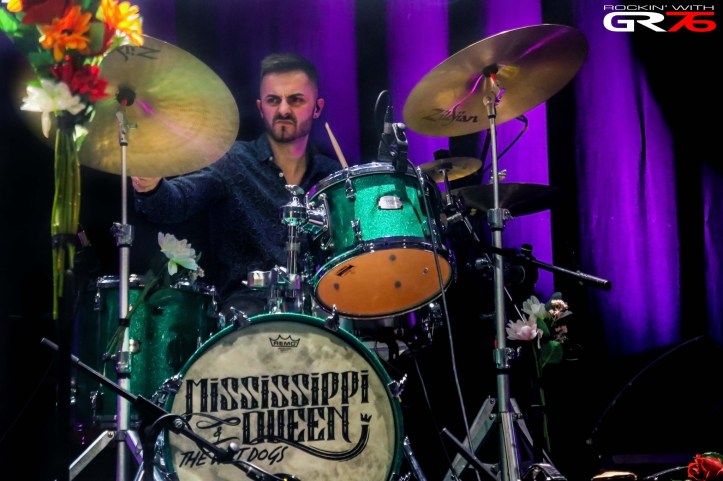 Mantener una banda de rock no es tarea sencilla. Hay un largo listado de variables, asuntos y actividades a poner en la balanza, pero en este tiempo y ese aspecto Mississippi Queen & The Wet Dogs han contado con la complicidad de quienes han compartido horas de ensayos, furgoneta y escenarios. La lista es tan extensa como las variables, pero Aitor e Inés, Inés y Aitor permanecen estoicamente desde el inicio, no en vano la iniciativa fue suya, en formato dúo dieron sus primeros pasos y así les conocimos aunque estuviéramos al tanto de antiguos proyectos en los que figuraban. Mirando hacia atrás, los años han pasado en un pispás, y de sus primeros repertorios en binomio acústico han pasado a un electrizante quinteto que mantiene el soul, el góspel, el rhythm and blues, el funk o cualquier otra variante de música afroamericana como especialidad de la casa. Buen reflejo de ello es “Phoenix”, el disco que lanzaron a finales del año pasado e interpretarían ante una multitud dispuesta a vibrar, sudar, brincar, bailar, cantar, emocionarse o darse mutuos achuchones con canciones que llegan al corazón la semana pasada. Canciones como la rompedora “I Found A Love” publicada como single del álbum que, vista la extraordinaria respuesta del personal, se convertiría en uno de los momentos cumbres de una noche de máxima expectación.