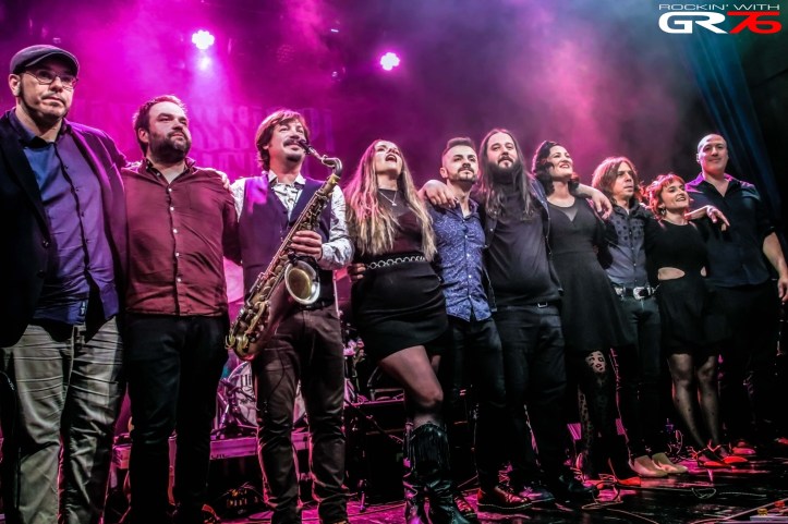 Esa guitarra traía consigo un slide, y tras la debida introducción (conocemos su porqué así como del resto de canciones, pero eso queda en su contexto y el directo, así que en caso de desconocerlo, ya sabe usted qué debería hacer), la ciudad que nunca duerme asoma en Bilbao por medio de “NYC” y a través del poderoso, fulminante y distinguido bottleneck del amigo Portugal que continuaría sentando cátedra en la acertada cuarta versión de la noche, “Save A Seat For Me” de BB King. La gente seguía en estado de ebullición o abstracción y Libe Urrutia da unos pasos al frente abandonando momentáneamente la posición de coristas y adoptando un papel solista en “I’m Yours”, circunstancia que más tarde calcaría Noa Eguiguren en la ya citada “I Found A Love” después de la aparición de un hombre que completaba la nómina de artistas: el saxofonista Alain Sancho. Al igual que los anteriores, tenía asignadas dos canciones (“Don’t Wait Up” y “Running To You”) en las que dejaría su impronta y su concordia con la banda, puesto que son muchos los años de confidencias y colaboraciones. Un himno más, esta vez “Try Matty’s” de la gran Aretha y el soul brilló emitiendo rayos de entusiasmo cuando la cariñosa dedicatoria “Ray Of Sunshine” obligó al acompañamiento masivo del convulso auditorio. Síntoma inequívoco de la trascendencia de un momento que no se repetirá.