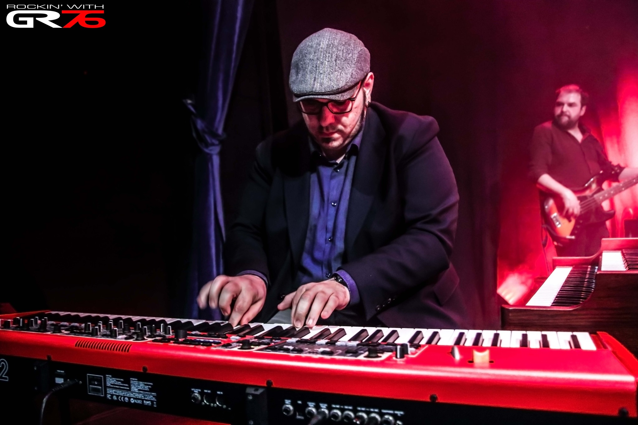 Ese interés se pudo comprobar en la extensa hilera humana montada en los prolegómenos alrededor de la antigua iglesia convertida en santuario. No sabríamos especificar si alcanzábamos un llenazo, pero si no se consiguió sería por centésimas, porque la sala estaba a rebosar. Se percibían las ganas y cierta inquietud entre la gente porque se alargaba la espera, pero en forma de incesante goteo fuimos ingresando en una estancia que nos recibía con sus majestuosas bóvedas en tonos púrpuras, moderada temperatura en contrate con el fresco exterior y una tarima engalanada con floridos ornamentos y mucho instrumental. Sabíamos que para la gala reservaban varias invitaciones que desvelaron durante los días precedentes, así que particularmente tampoco nos sorprendió sobremanera, pero… Los nervios asoman y se manifiestan en forma cutánea cuando se apaga el sonido ambiente, se abre la puerta del camerino y… “¡¡Son siete…!!” Que se puede escuchar entre el efusivo recibimiento, y tras un leve desliz, comienzan con sus comienzos rescatando “Signed, Sealed, Delivered (I’m Yours)” del señor Stevland Hardaway Morris, conocido mundialmente como Stevie Wonder. Al quinteto formado por la pareja ya citada más Ander Alonso en la batería, el organista Mikel Núñez y el bajista Jon Ander Amigo, había que añadir la presencia de Libe Urrutia y Noa Eguiguren en los refuerzos vocales. Posteriormente más representantes de la escena bilbaína se incorporarían, pero vayamos paso a paso mejor.