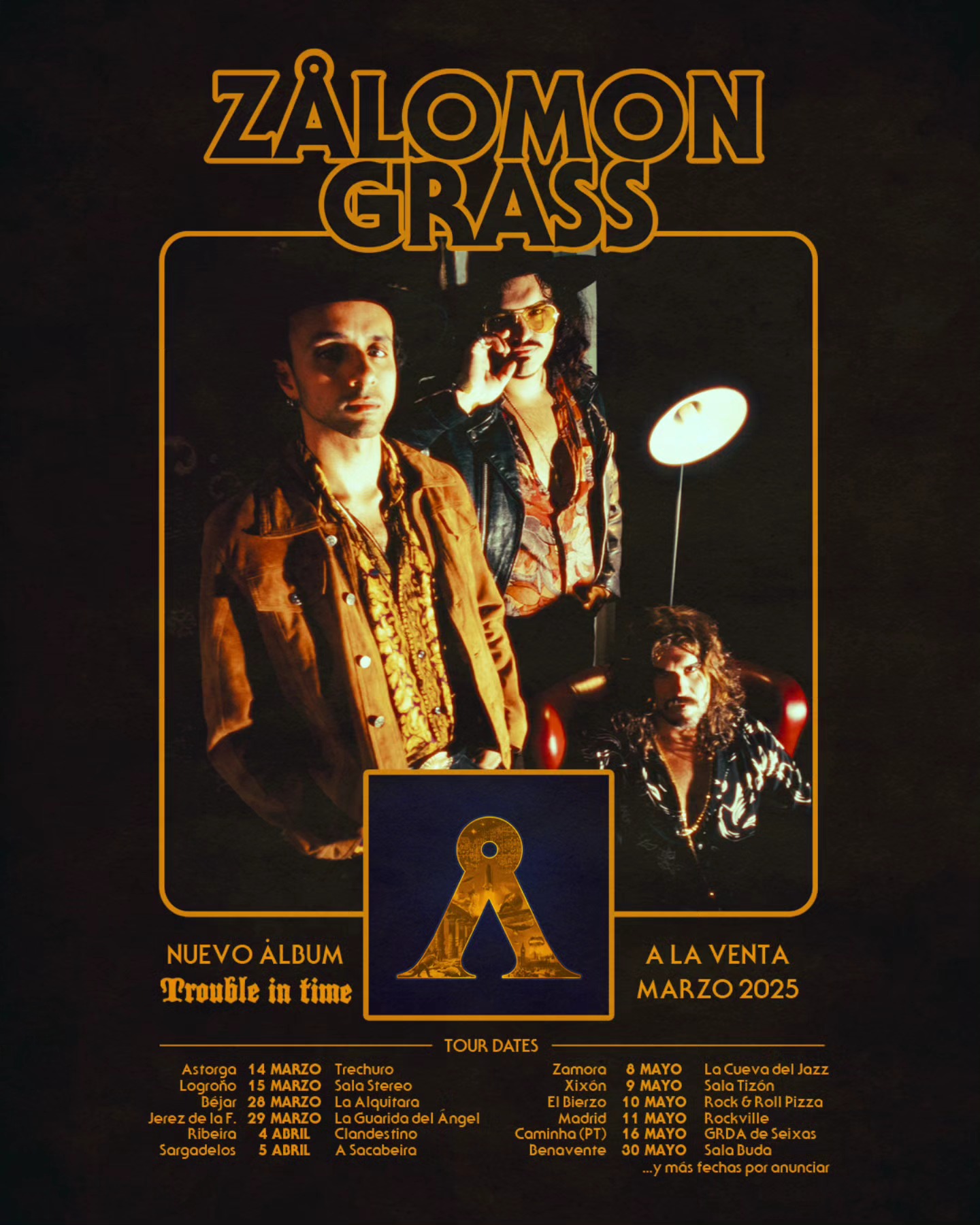 Después de dos demoledores singles como “Twelve Labors” o “Bad Combination”, el nuevo disco de los vigueses Zålomon Grass será una realidad el lunes 10 de marzo. Es decir, “Trouble In Time”, que es el título del trabajo, está a la vuelta de la esquina y seguramente prolongue la línea ascendente del terceto desde que se estrenara en 2021 por medio del formidable “The Four Track EP From The Live Session At Radar”. A partir de ese instante, su enérgica combinación de cánones y rituales que ellos mismos bautizarían como Cosmic Blues, adquirió grandes dimensiones porque mucha gente nos pusimos inmediatamente manos a la obra y el boca a boca funcionaría a las mil maravillas aunque, en realidad, no nos vamos a poner medallas porque el mérito es suyo y de sus psicodélicas, progresivas y revolucionarias canciones, de sus concienzudas grabaciones y de sus explosivas actuaciones, ¿no?