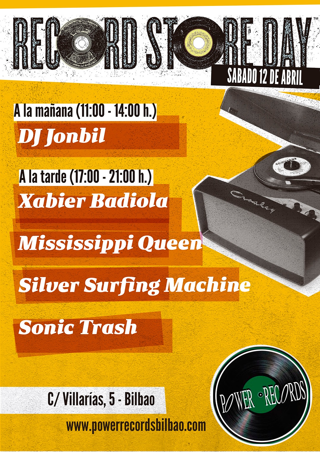 Pues el próximo sábado 12 de abril, la legendaria tienda ha preparado una suculenta minuta con nombres del entorno que actuarán desde las 17:00 horas hasta, como ya hemos apuntado, las 21:00 horas que tienen como tope: Xabier Badiola, guitarrista eibartarra (The Mood Rings, Sotomonte) que presentaría el año pasado su debut en solitario; Mississippi Queen, quienes adecuan la alineación en función de las condiciones manteniendo firme su rollo soulero y acaban de publicar “Phoenix”; los psicodélicos Silver Surfing Machine que también se estrenarían el año pasado y durante los últimos están a pleno rendimiento, y los fenomenales Sonic Trash, conjunto sine qua non en el underground bilbaíno que cuenta con un escalofriante historial de grabaciones y actuaciones siendo, por descontado, un auténtico embudo sónico-sensorial en las distancias cortas. A toda esta programación vespertina hay que sumar la presencia de Jon Bilbao que estará pinchando música desde la mañana así como el habitual lanzamiento de piezas exclusivas, ediciones especiales o material inédito que podrás consultar en su página oficial. ¡Anímate!
