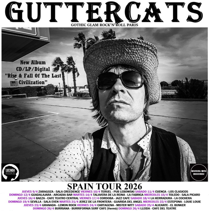 Fieles a su visita hispánica anual, los galos Guttercats realizarán una segunda parte de la gira “Rise & Fall Of The Last Civilization”, álbum que publicaron el año pasado y tantas alegrías les está proporcionando, ya que un buen porcentaje de la afición y varias publicaciones coincidirían en juicios y opiniones. Además, la acogida del anterior tour, y aunque se trate de una banda que periódicamente ha actuado por aquí, obtuvo buenas audiencias que a buen seguro determinarían la ineludible necesidad de repetir experiencia. De ahí que denominemos al futuro como al pasado.