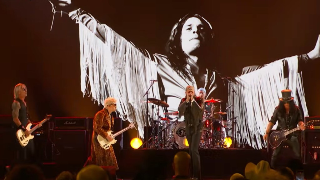 La interpretación del «WAR PIG» por parte de Slash, Duff McKagan, Chad Smith, Andrew Watt y Post Malone sobre el escenario del los GRAMMYs ha sido sencillamente espectacular, como a continuación podrás comprobar por ti mismo. Con una puesta en escena contundente, cargada de afilados riffs de guitarra y perfectamente acompasada por un contundente ritmo de bajo y batería , sin desmerecer en absoluto la mas que destacable actuación por parte de Post Malone, en una mezcla de estilos que quedará guardado eternamente en la memoria de los allí presentes, y d e nosotros ahora.
