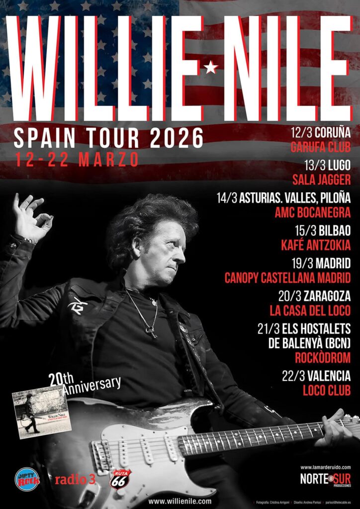 Las fechas, locales y localidades confirmadas en el tour 2026 de Willie Nile son: