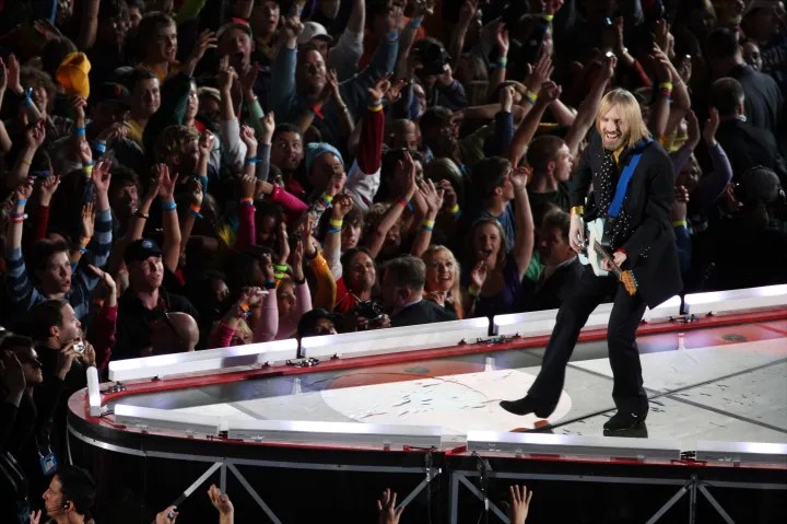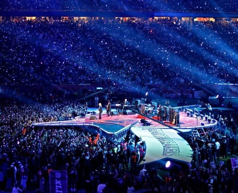 Un corazón palpita en medio del estadio, de repente se ve como una iluminada guitarra Flying V se dirige rápidamente directo hacia él. En cuanto la guitarra lo atraviesa, una ráfaga de fuegos artificiales bordean repentinamente el corazón, mientras los acordes de American Girl resuenan en el horizonte… Ahí están, son Tom Petty and the Heartbreakers sobre ese hermoso escenario diseñado con el icónico logo de la banda.