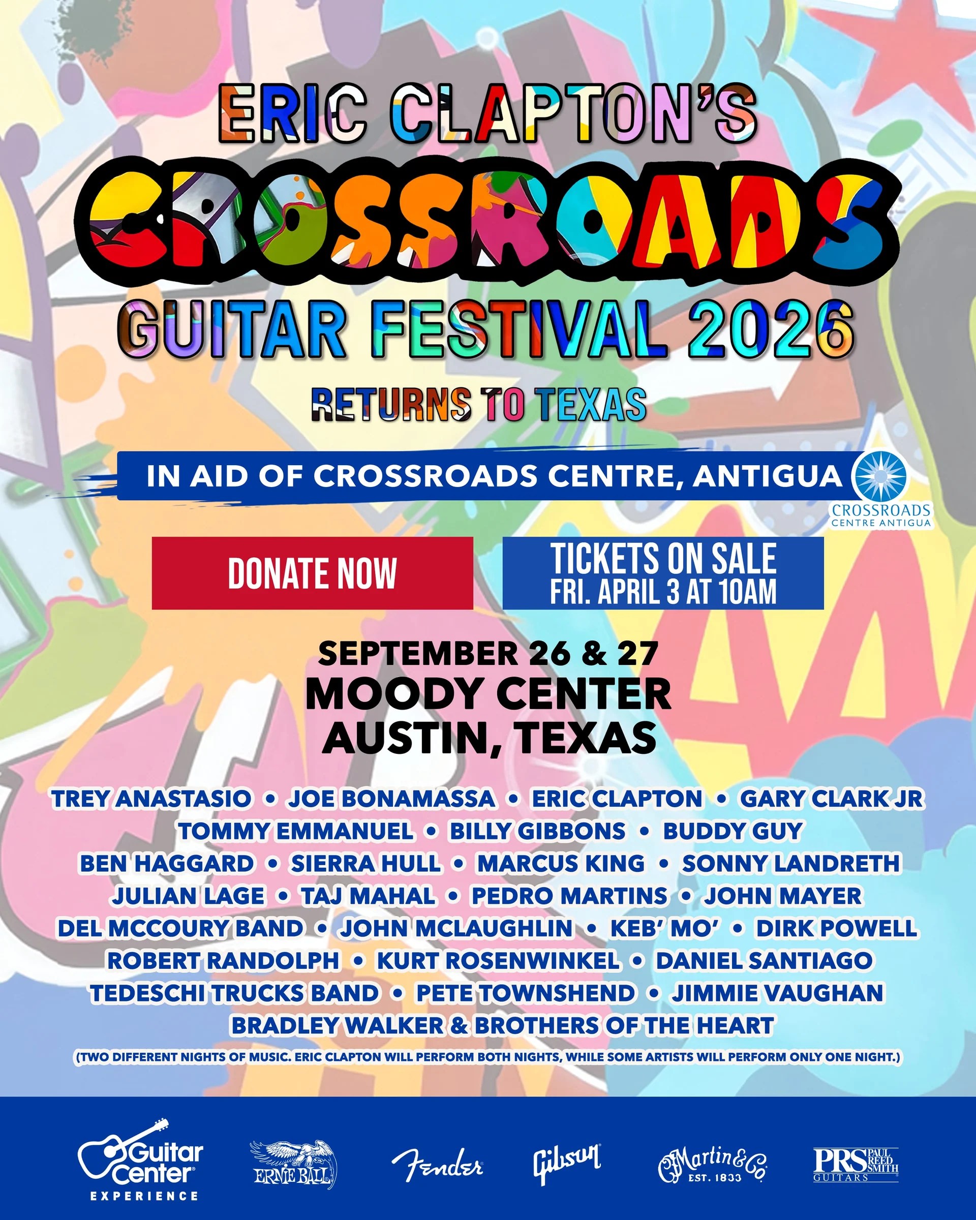 Eric Clapton ha anunciado el regreso del Crossroads Festival, que tendrá lugar del 26 al 27 de septiembre en el Moody Center de Austin, Texas. La edición de 2026 marca la séptima entrega del festival, que regresa tras el parón de 2023.