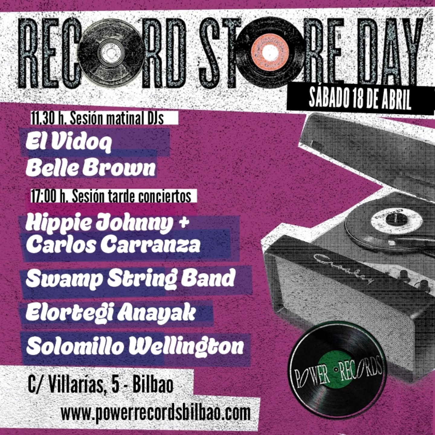 Pues para este año, Power Records tiene preparada una programación que dará comienzo a la mañana con DJ’s (El Vidoq y Belle Brown) amenizando las compras y por la tarde, la habitual actuación de bandas locales a pie de calle frente al establecimiento. Sus nombres, los que ves en la imagen. Una atractiva y variada selección con cuatro actuaciones porque Hippie Johnny & Carlos Carranza, dos hombres conocidos en el ambiente rockero del botxo, intervendrán como dúo. Después Swamp Stringband, tres chicas que están captando la atención con su fórmula de swing, country y folk, rock euskaldun a cargo del conjunto Elortegi Anayak, y la banda de Barakaldo Solomillo Wellinghton, encargada de finalizar el guateque con su frenética y explosiva combinación de punk, garage y underground. En caso de no conocer las bandas, ya sabes qué puedes hacer. En caso contrario, mismo consejo porque conoces el percal.